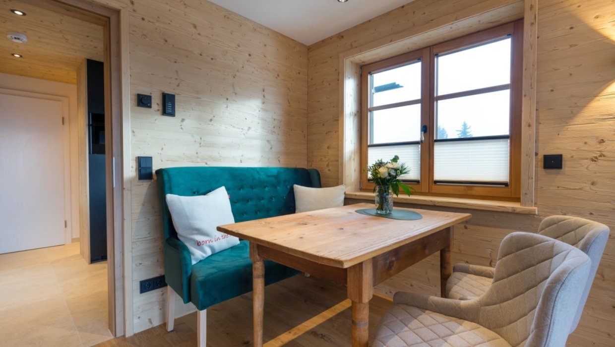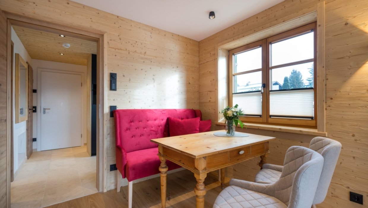 Obwohl im 1. Stock, haben Sie hier einen möblierten Südbalkon mit Dachterrassen Charakter. Hier lässt es sich nach einer Wanderung wunderbar entspannen.