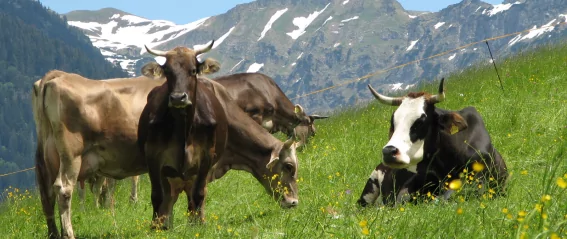 Das Jungvieh (Jungtiere bis zur ersten Kalbung) verbringt den Sommer (Juni/Juli bis September) auf den umliegenden Alpen. Hier erhalten diese Tiere bestes Berggras mit den entsprechenden Kräutern. Mancher mag sich fragen, warum die geälpten Tiere sog. Weideschellen (Glocken) tragen. Diese Frage ist ganz einfach zu beantworten. Der Hirte hört schon am Klang der Schelle, wohin sich einzelne Tiere der Herde entfernt haben, kann diese leichter orten und zurückholen. Viele Hirten erkennen diverse Tiere sogar am Klang einer einzelnen Schelle. Im Herbst werden die verschiedenen Jungviehalpen Oberallgäu zum Abschluss der Bergsaison auf dem Viehscheid erwartet. Dieser Tag ist für Bauern wie auch Hirten ein Festtag. Zu diesem Anlass werden die Jungtiere mit großen Zugschellen (große Glocken) geschmückt. Jede Herde (Alpe), welche im vergangenen Bergsommer keinen Verlust zu verzeichnen hatte, wird von einem Kranzrind angeführt. Dieses Rind wird noch zusätzlich durch einen prachtvoll gebundenen Kranz geschmückt. Die Älpung der Jungtiere ist ein wesentlicher Baustein in der Entwicklung des Tieres, bis es mit der ersten Kalbung zum ersten Mal gemolken wird.